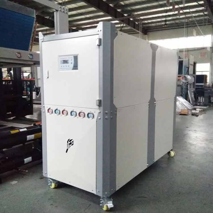 水冷式工業(yè)冷水機(jī)組,又可以分為開放式冷水機(jī),密封式(有的稱為箱型冷水機(jī))和螺桿式冷水機(jī)。水冷式工業(yè)冷水機(jī),都要另外加裝冷卻水塔和水 泵,用以抽取熱水散熱。才能達(dá)到較好的冷卻效果。 開放式的冷水機(jī),還要另外裝一個(gè)水箱,密封式就不必了,因?yàn)樗陨韮?nèi)置了一個(gè)水箱。開放式一般會(huì)安裝在車間外,便于檢修,但因其不夠美觀,所以就產(chǎn)生了密封式的水冷型冷水機(jī)。密封式的水冷冷水機(jī)是一個(gè)箱體結(jié)構(gòu),安裝方便,使用 方便,在現(xiàn)在的客戶群中比較受歡迎。 但是如果您對(duì)制冷量的要求非常大的話,就要選用螺桿式的冷水機(jī)了,此時(shí)我們一般會(huì)稱之為冷水機(jī)組,大部分的廠家,如果您對(duì)冷水機(jī)的壓縮機(jī)要求達(dá)到100HP以上時(shí),我們會(huì)建議您用螺桿式冷水機(jī)。